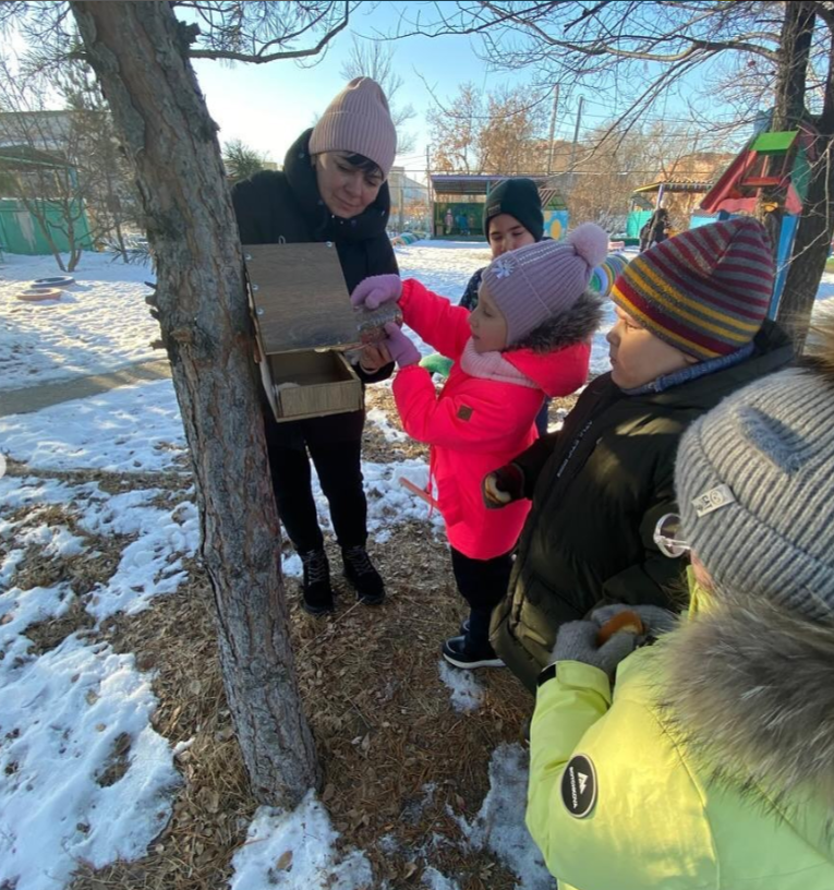 "Біртұтас тәрбие" бағдарламасын іске асыру шеңберінде және "Әкелер мектебі" шеңберінде "Қамқор" жобасы шеңберінде "Ертегі" дайындық тобының тәрбиеленушілері мен әкелері құстарға арналған жем-шөп дайындады. Енді балалар серуендеу кезінде қауырсынды достарын қуана тамақтандырады. 14.12.2024