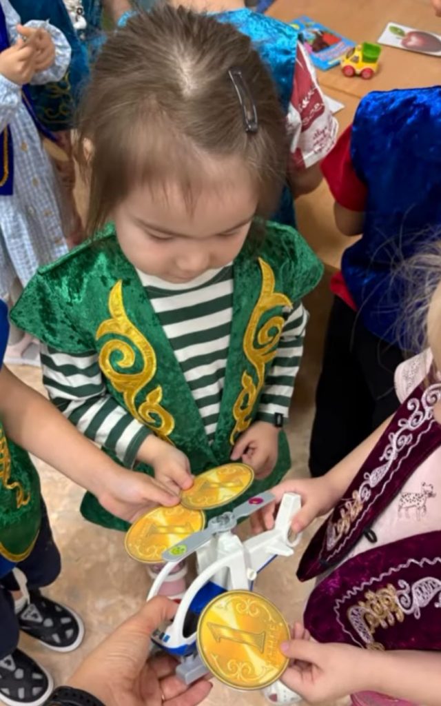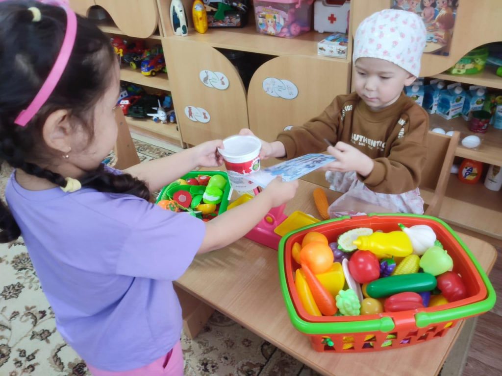 Балабақшамыздың тәрбиеленушілері тұрақты түрде сюжеттік-рөлдік ойындарға қатысады. Бұл ойындар балалардың қиялын, әлеуметтік дағдыларын және қарым-қатынас жасау қабілеттерін дамытуға көмектеседі. Ойын барысында балалар әртүрлі рөлдерді меңгеріп, құрдастарымен өзара әрекеттесуді, өз ойы мен сезімдерін білдіруді, келісімге келуді және бірлескен шешім табуды үйренеді.