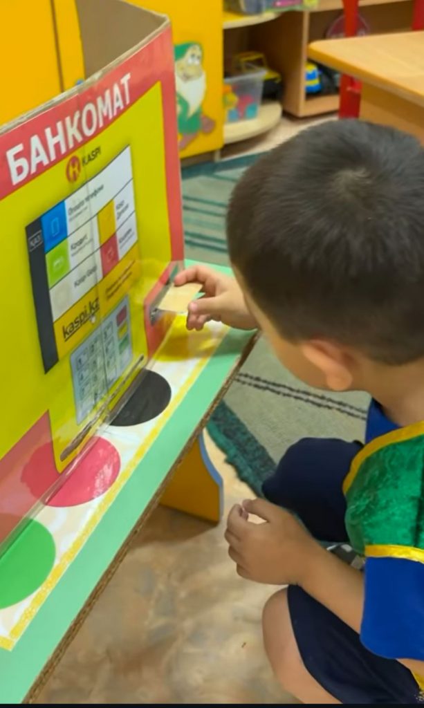 Балабақшамызда «Адал Азамат» бағдарламасы тұрақты түрде жүзеге асырылуда. Осы бағдарлама аясында тәрбиеленушілер «Kaspi Bank» ұйымына қызықты саяхатқа барды. Іс-шара барысында балалар қолжетімді әрі ойын түрінде қаржылық сауаттылықтың негіздерімен танысып, банктің қызметі, оған қатысты мамандықтар және ақшаның адам өміріндегі маңызы туралы білді.